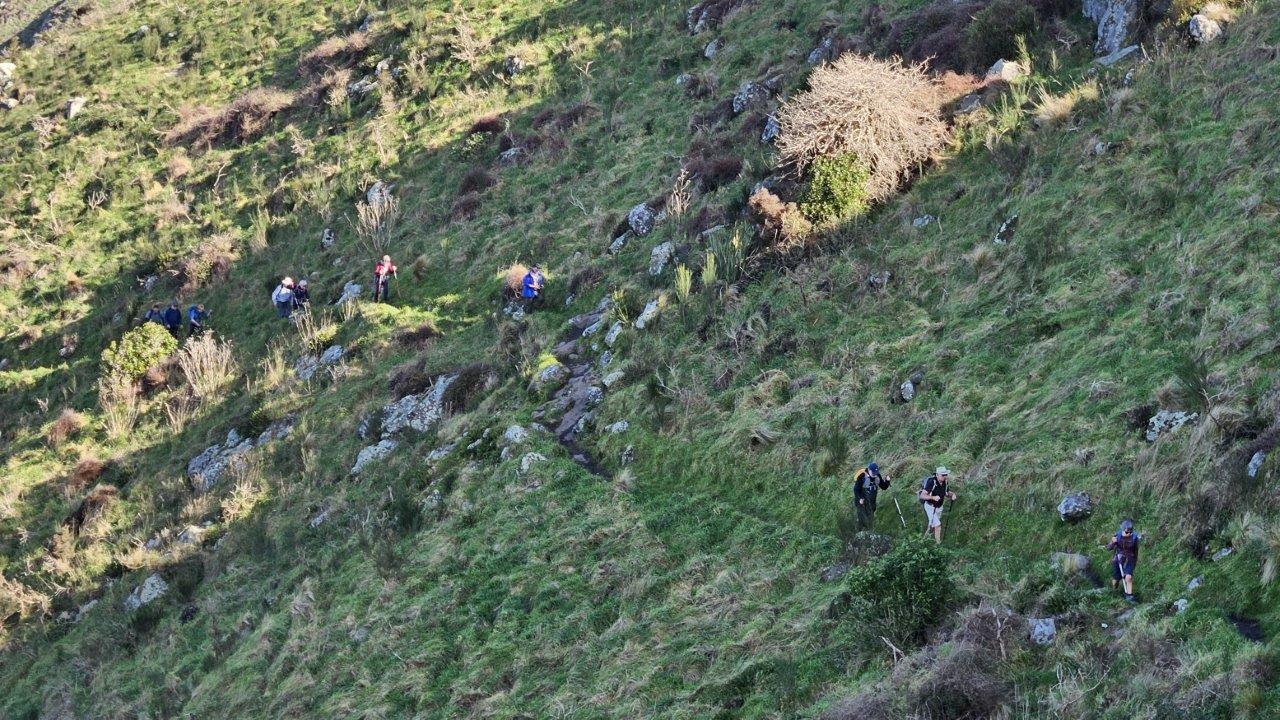 In terms of the tramp, it was quite a work-out. In effect it was up and over the Bridle Path twice. As ever, different people handled it in different ways. For instance above the rattle of my lungs gasping for oxygen, I could hear other trampers chatting away merrily. Clearly not at all stressed by the stroll. The other “hot” topic of conversation was about the set of legs on one of the males wearing shorts. The owner thinking they were best described as “gorgeous”! I should hasten to add that not everyone else agreed. However, this still lead to one of the younger ladies fantasising that he was probably wearing blue and white striped “Speedos”. Fortunately at that stage the group spotted someone swimming in the sea and this cooled the conversation down no end.