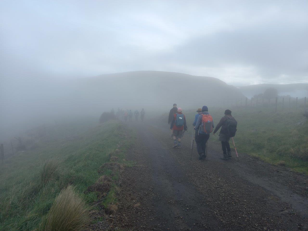 Things started off more or less mundanely, 49 trampers including regular visitor Megan T, on a bus heading towards Little River – unless you include visitations by spectres from the past: Jenny, Les and Kay, whom we hadn’t seen for quite a while.