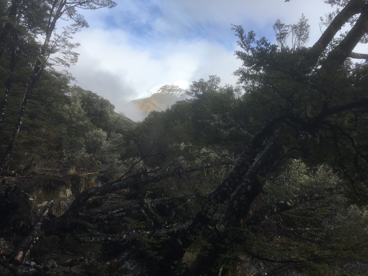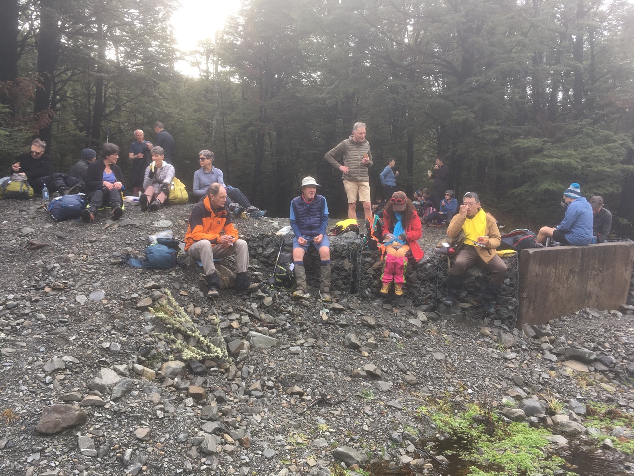 Morning tea was at a pleasant spot near the turbulent Thomas River (oh alright, it was actually so tiny we could step over without getting our boots wet- no drama here either sorry). The 11 Alternates had already passed this point, having avoided most of the uphill part by skirting round on the flat.