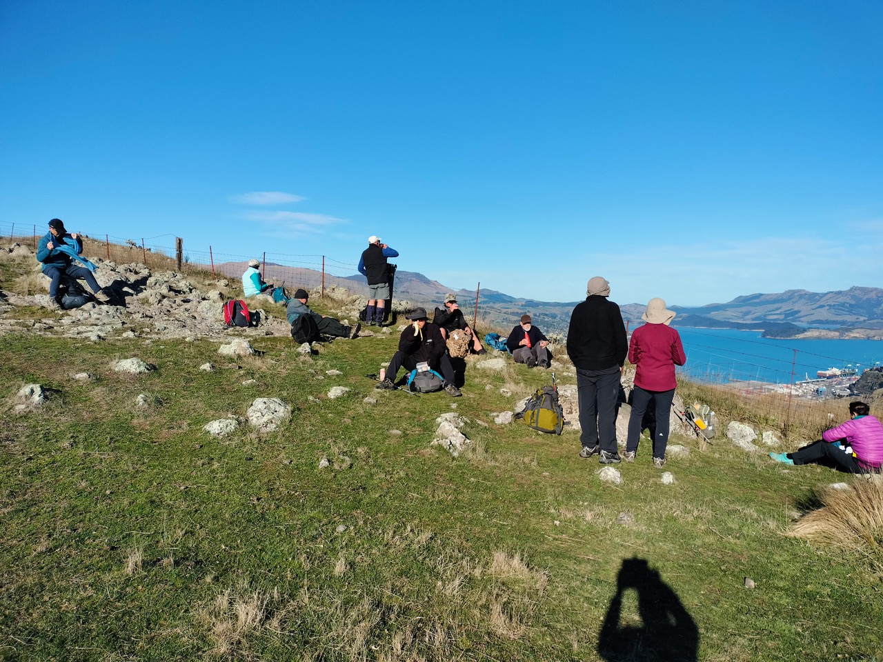 Just before we reached our lunch spot at Godley Head we encountered another group of hikers descending. “Oh, it’s the Alternates” we exclaimed, thinking what good time they had made. On reaching the rest area we found a group from the Kaiapoi Walking Club in residence but there was plenty of room for all.