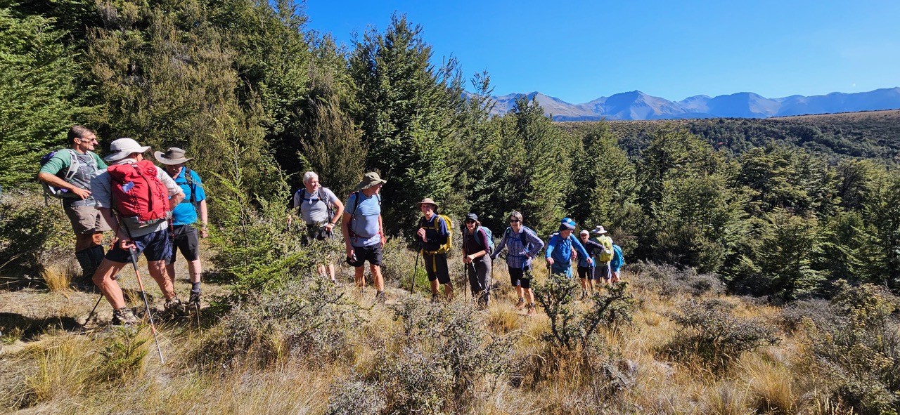 The alternative group of 17 followed much the same route except that at the start of their walk they bypassed the meander through the logging tracks and the Thomas River in favour of a more direct attack on the steepish climb up to the lunch stop.