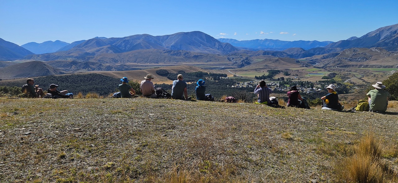Apart from Selwyn’s enthusiastic briefing at the start, there were no dramas to report – just a very pleasant ramble through the bush and farmland (with permission) of the Canterbury foothills.  The alternative group experienced something of high-country farming life at the end of their walk when they met a large flock of sheep being herded expertly by Castle Hill Station staff and their trained sheepdogs.