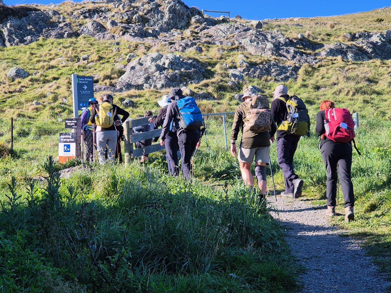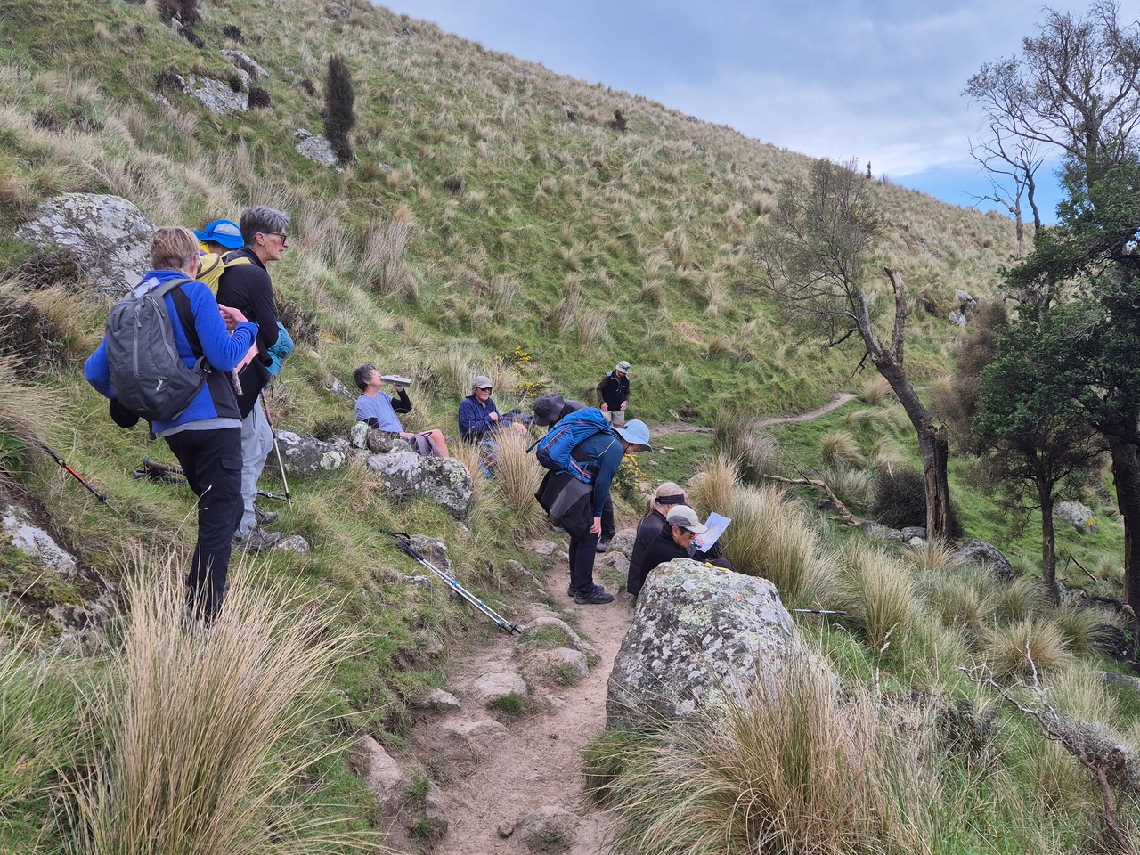 Shortly after driver Grant departed from Bishopdale, President Graham welcomed visitor Sharon as one of today’s 31 walkers. We were all generously gifted a Kathmandu packing tube by members Veronica and Kiwan, in recognition of their recent marriage. The congratulations and best wishes of club members are extended to this couple.