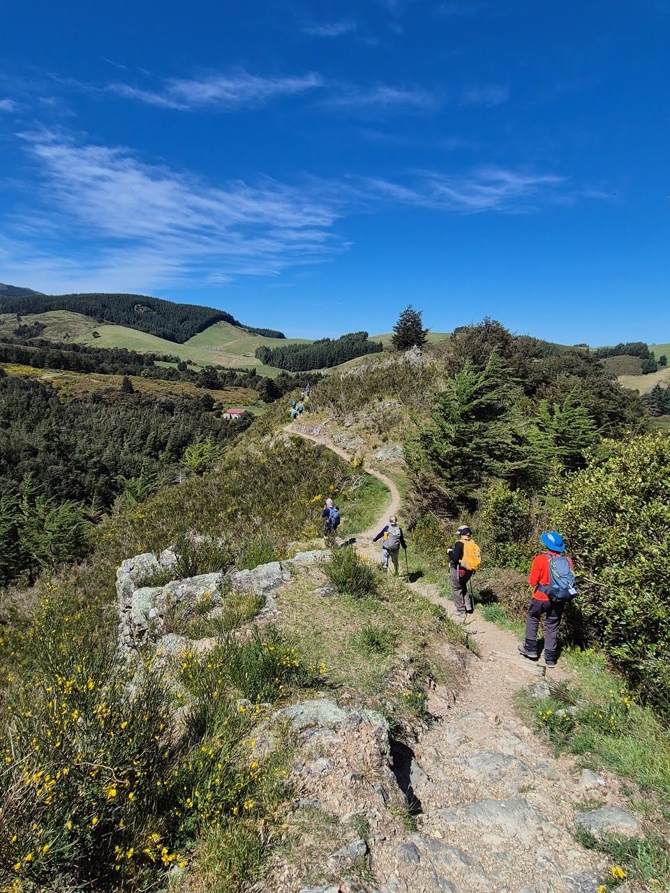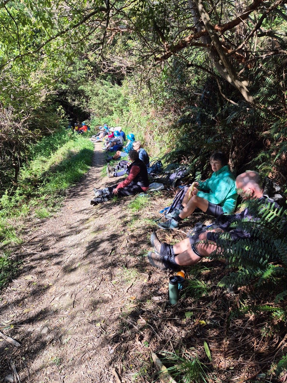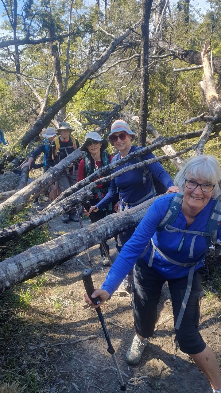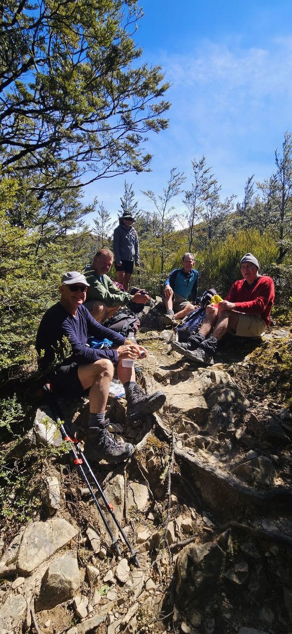 The Standards enjoyed a lovely two hour uphill walk, to just beyond the treeline. After advancing a short distance and then with a distinct possibility of trampers being toppled over by the gale, it was deemed a good move to retreat. Alas for the Standards, today’s goal of summitting Mt Oxford was not meant to be. Lunch was enjoyed in a more sheltered spot downhill, out of the wind, before an early return to the bus, with a 90-minute wait for the Alternates to appear.