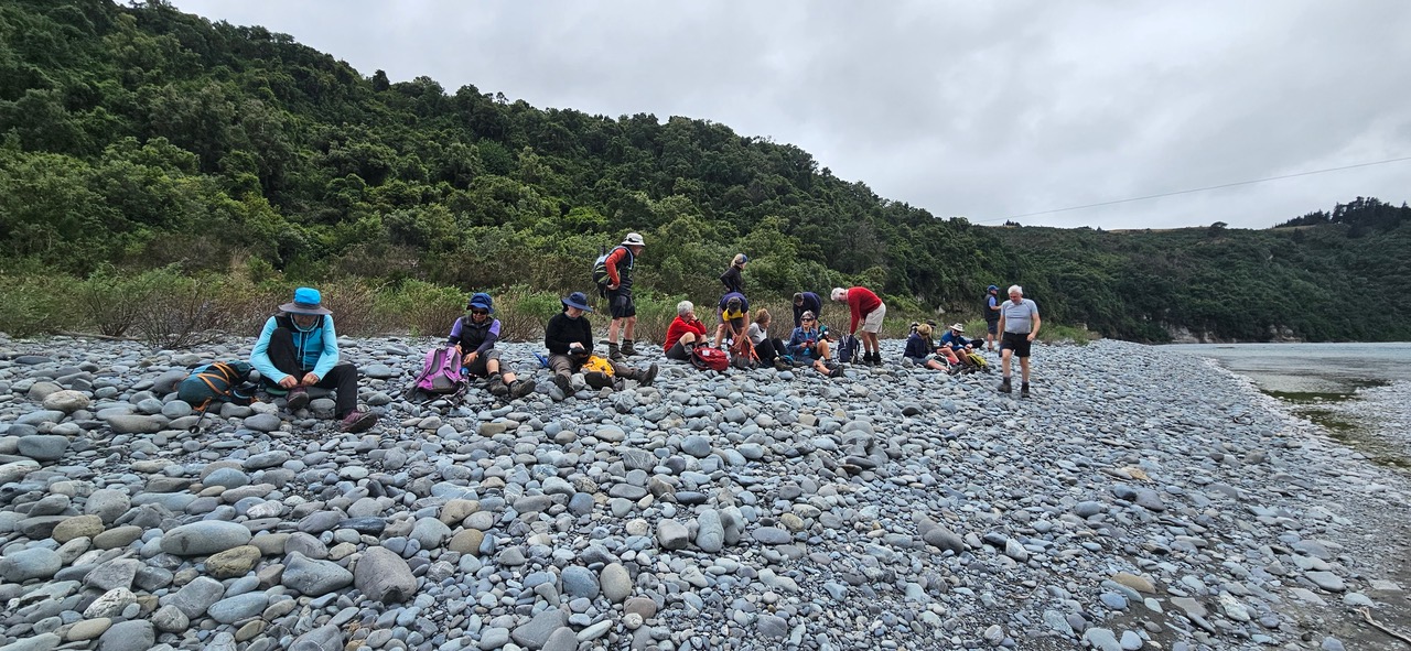 A forecast high of 14deg for Rakaia Gorge turned out to be pretty much on target. 30 trampers set off from the starting point in two groups, 23 Standards were off and away including visitor Rebecca S, plus 7 Alternates who moved more slowly. Bus driver Peter remained with the bus at the drop off point, always good to have our transport and driver awaiting us.