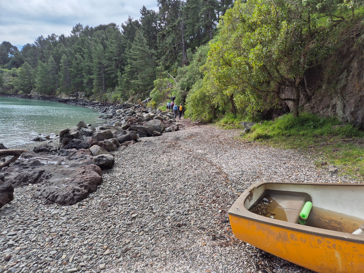 Bus driver Alan dropped us at Te Wharau / Charteris Bay. With just the one toilet available for the many, it was a case of patiently waiting to begin the walk at 1000 hrs.