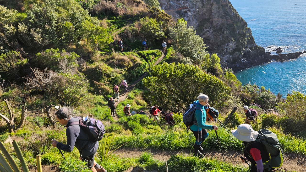 Some 20 minutes after the Alternates, the Standards arrived at the beach lunch stop at 1220 hrs. From there it was a steady uphill return in the sunshine, through plantation forest and on road to the bus. Both groups arrived back simultaneously at 1410 hrs.