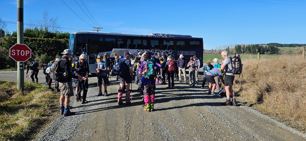 Shortly after bus driver, Alan, left Bishopdale there was mutual excitement as we passed two club members waiting for their airport bus, bound for different adventures. There were 38 trampers including visitor David C, and Jim, a guest of Joanne.