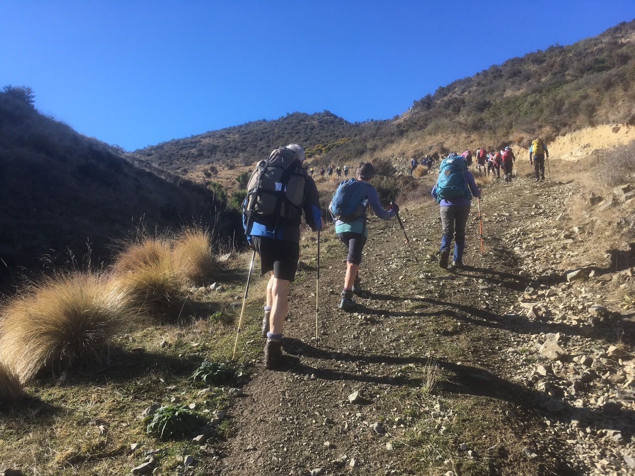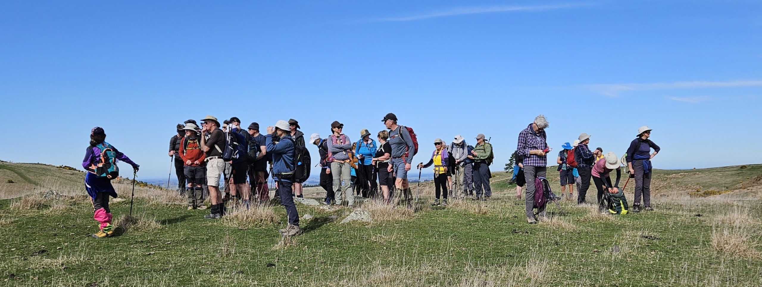 After last week’s awful weather and the ensuing cancellation, 42 eager trampers were keen to enjoy the fine conditions and workout that lay ahead.