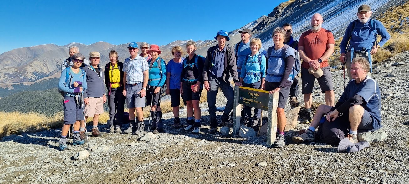 After collecting our fellow trampers from their pick-up spot at Halswell, we numbered 38 in total. President Jen welcomed us all to what was shaping up to be a great day, introduced a new member Bruce H, and thanked Kate for the birthday chocolates which were circulating. Although not the done thing to inquire how many candles on the cake, Kate was quite forthcoming, saying that she now qualified for free skiing. Further questioning elicited the information that she had not been on the slopes for quite a few years, and with her health and well-being foremost in our minds, free pass or not, there were many cries of, “Don’t do it Kate!!”