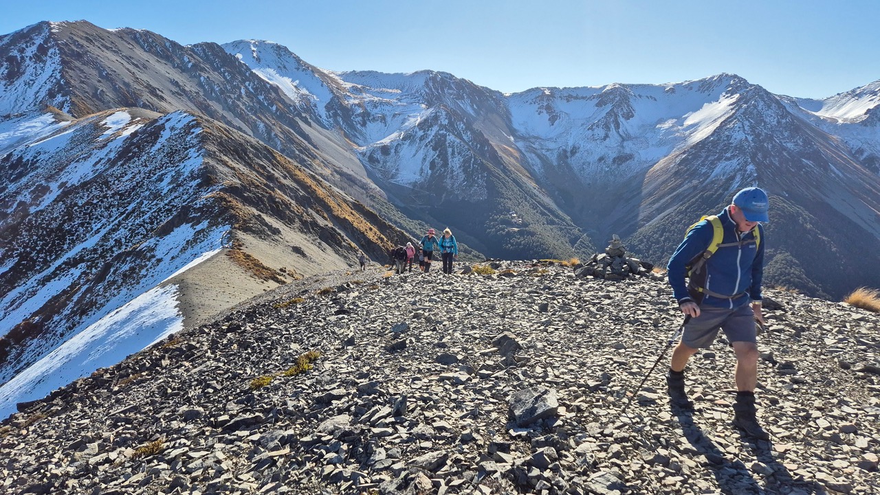 The Alternates had been dropped off at the Craigieburn Valley carpark where they walked up the access road before turning left on to the Valley Track. They had an uneventful hike with nobody coming to grief crossing the scree slopes. They enjoyed their lunch in the ski field carpark.
