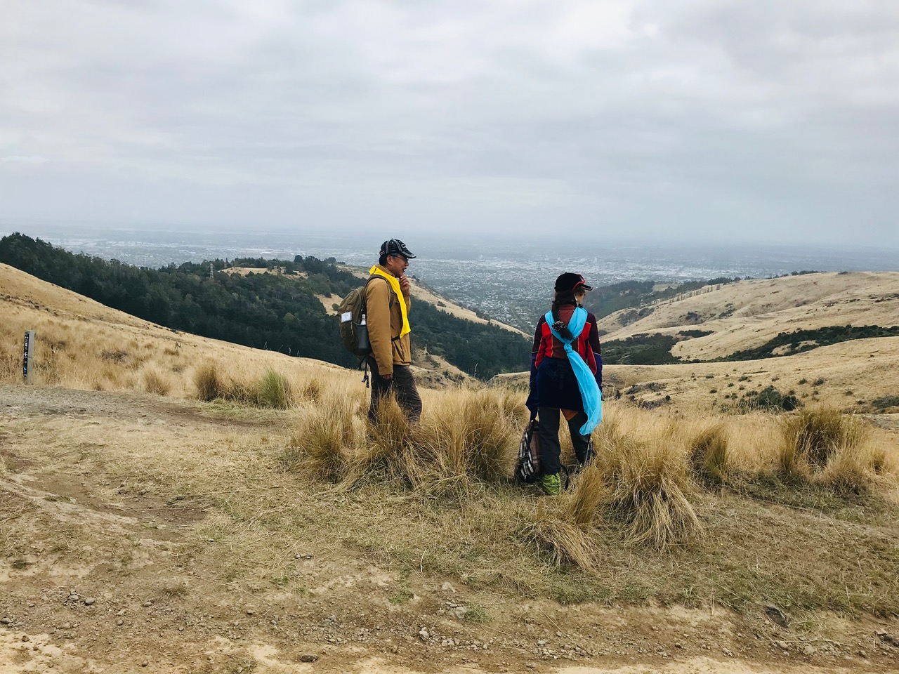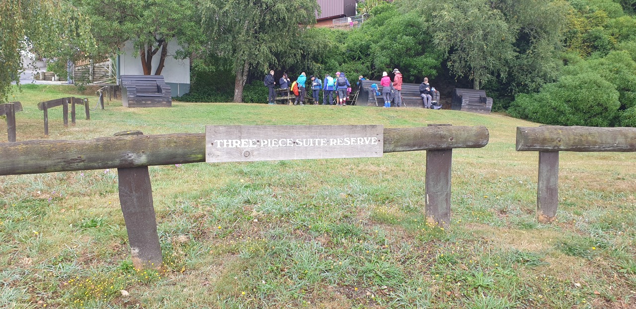 Our driver Stuart had to face at least three extra challenges before we could start walking. Firstly, a very short extra wait at PMH for a late “caught in traffic” arrival; next a careful and tactful wait at the intersection with Dyers Pass Rd for a “we almost left you behind, sorry” member after the Takahe toilet stop; and third was our arrival at the John Jameson Lookout Carpark to find the gate still closed and locked! He remained delightfully calm throughout these interruptions.