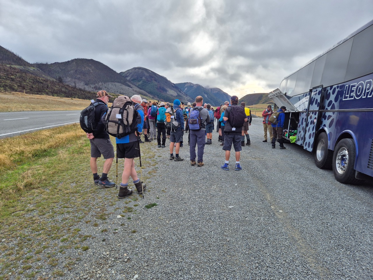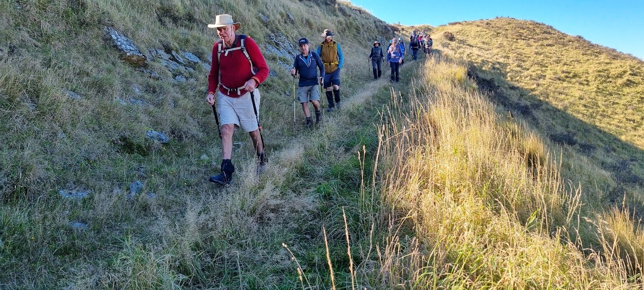 After departing Bishopdale we picked up two strays in Woodend and became a total of 43 willing walkers, keen to undertake this North Canterbury farm outing, in an area not generally accessible to the public. Our driver was Garth, there were 28 Standards and 15 Alternates with three visitors, Diane, Richard and Taylor joining us. Chris H brought along chocolates, always good to celebrate another year, a welcomed treat.