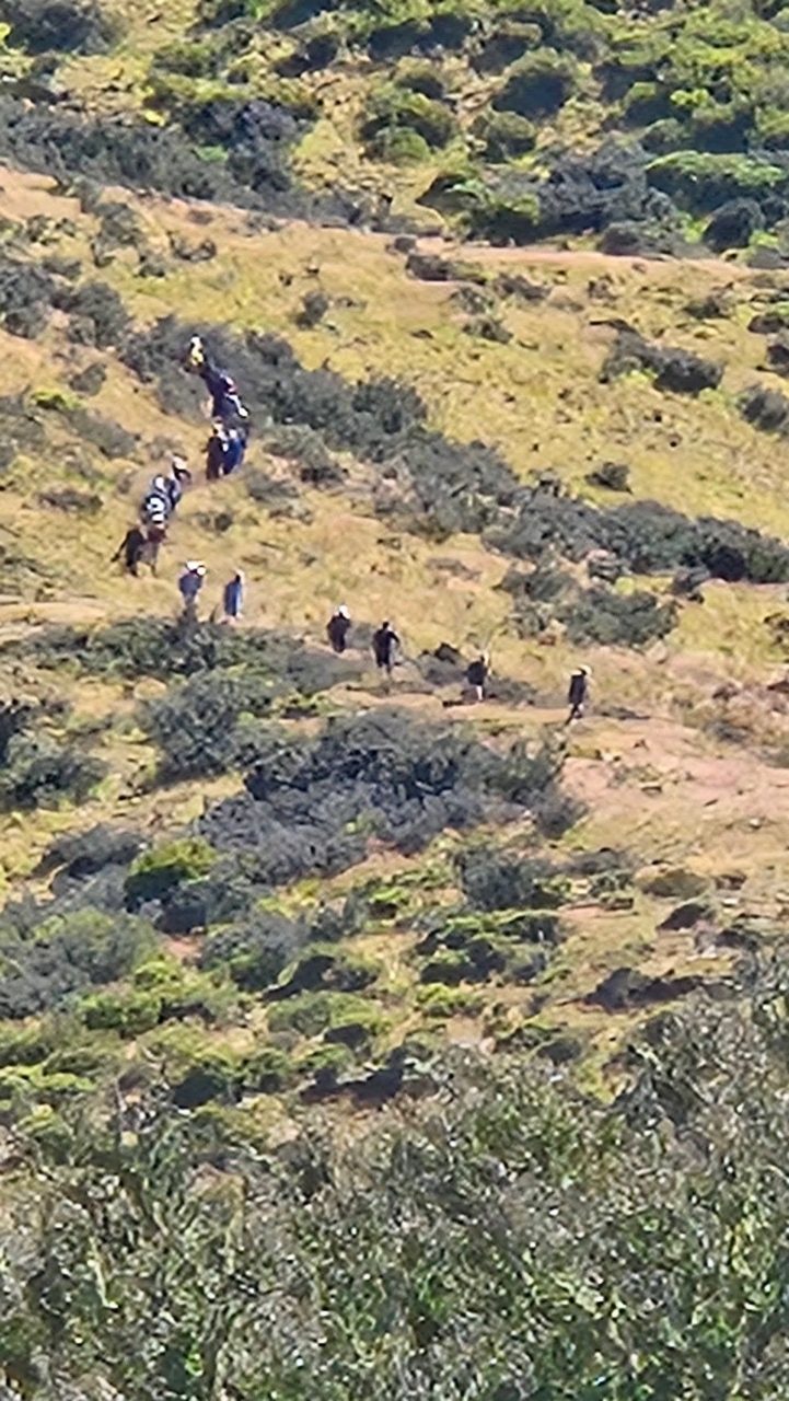 Trampers wait as the 'mob' advances...